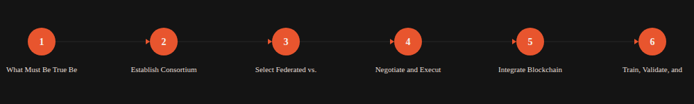 Time estimate: 12 to 16 weeks for three training rounds plus validation. Who does it: Data science leads at each member institution, coordinated by the consortium administrator.