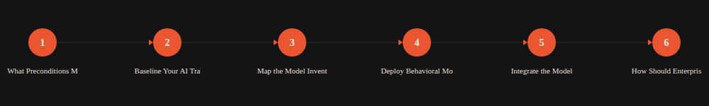 At 30 days: Baseline traffic report complete, model inventory draft with at least 80% coverage. At 60 days: Behavioral monitoring live, alert tiers configured, first enforcement actions documented. At 90 days: CMDB integration complete, tiered policy fully enforced, first quarterly inventory review completed.